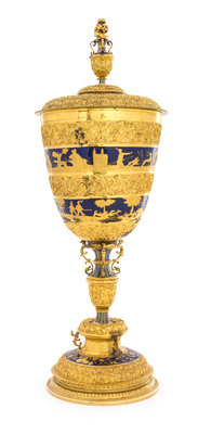 the design with blue enamel bands based on The TvL Cup by Thierry Dierick Luckemans in the Victoria & Albert Museum, London.