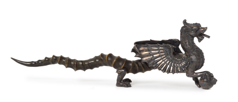 in the form of The Dragon of Wantley, with a horn tail.