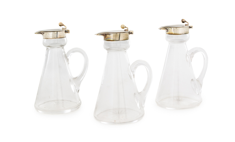 A Set of Three Edwardian Silver-Mounted Glass Cruets