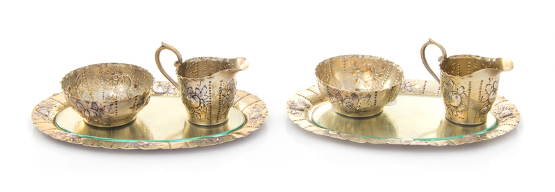 A Pair of German Silver-Gilt Creamer and Sugar Sets