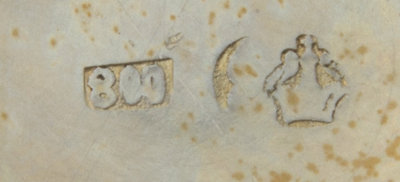 comprising a creamer, sugar and underplate, each having floral and foliate repousse decoration.