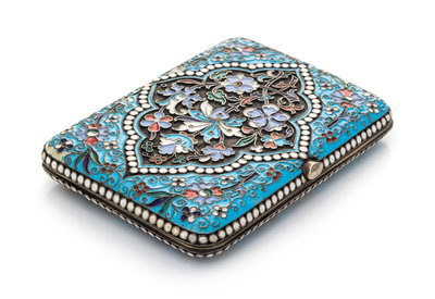 A Russian Enameled Silver Cigarette Case
