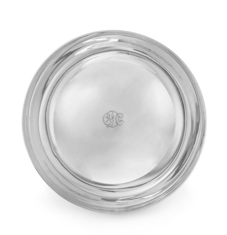 the bowl centered with engraved monogram CDC, raised on a circular foot.
