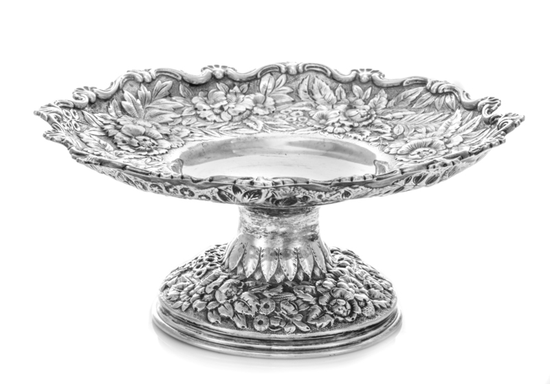having a rocaille and S-scroll decorated rim, raised on a circular base.