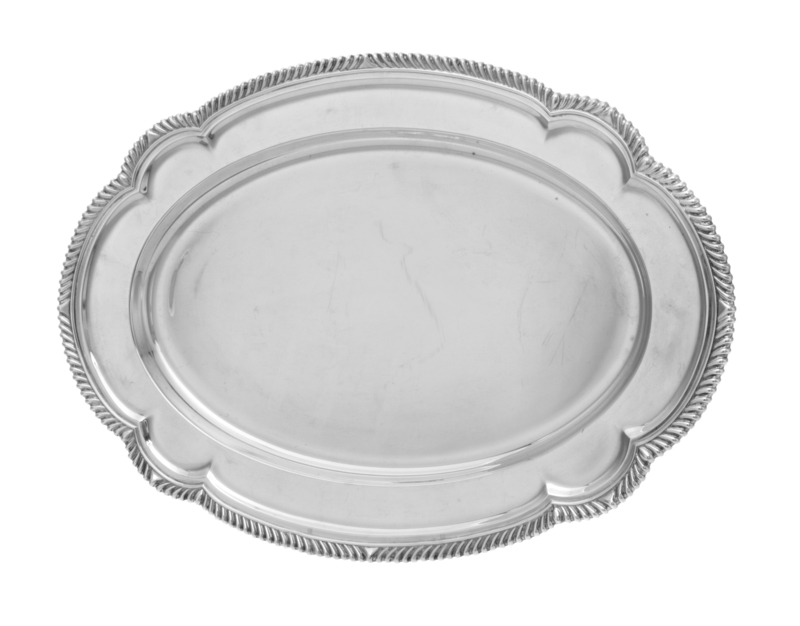 the oval form platter with an undulating gadroon border.