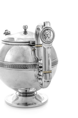 Medallion pattern, comprising a teapot, covered sugar and creamer.