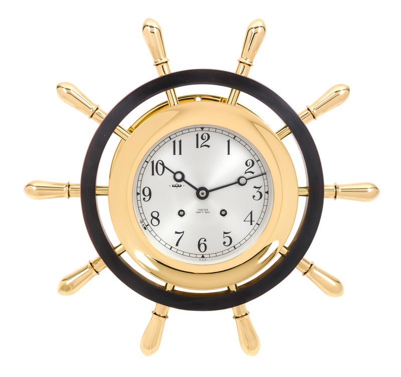 the silvered dial with Arabic numeral hours, signed Chelsea Ship's Bell.