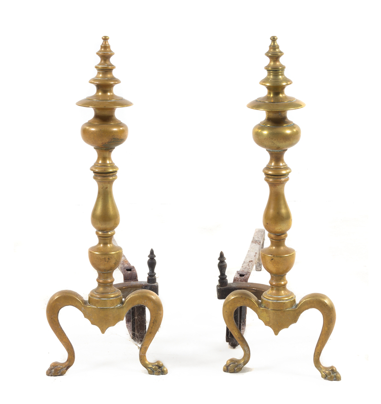 A Pair of American Brass Andirons