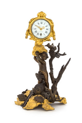 A French Gilt and Patinated Bronze Figural Clock