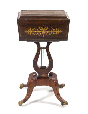 A Regency Brass Inlaid Rosewood Tea Poy