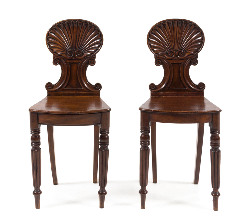 A Pair of Regency Mahogany Hall Chairs