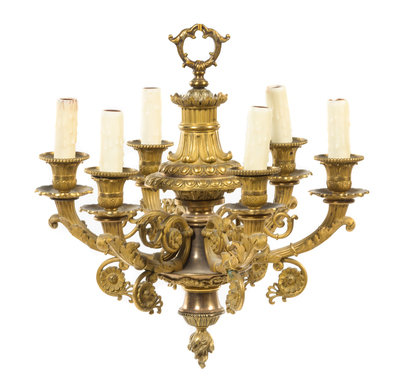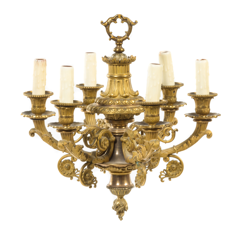 A Bronze Six-Light Chandelier