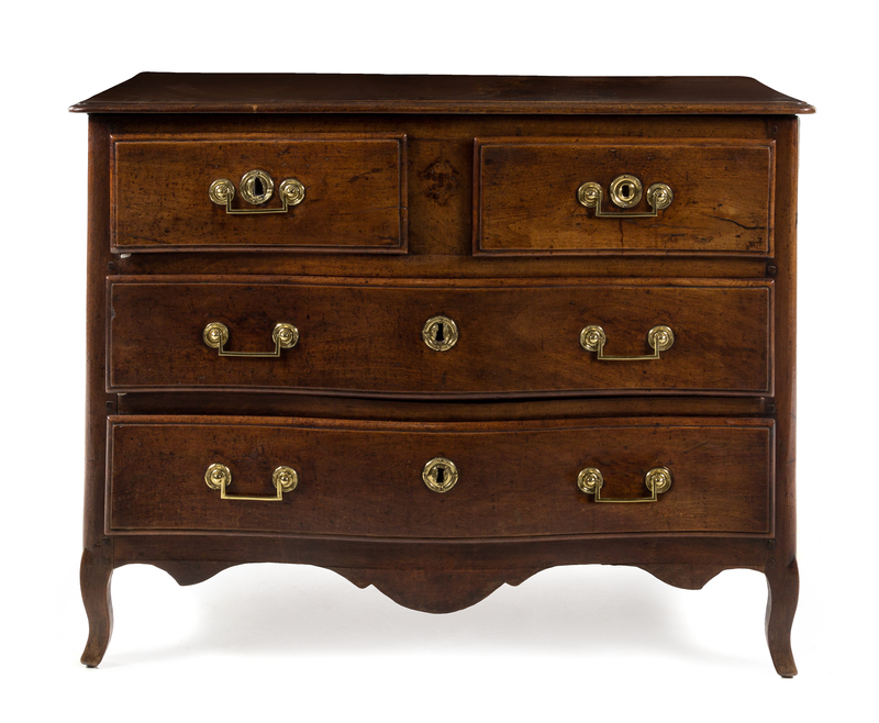 having a rectangular top with a molded edge above two short drawers and two long drawers, raised on cabriole legs.
