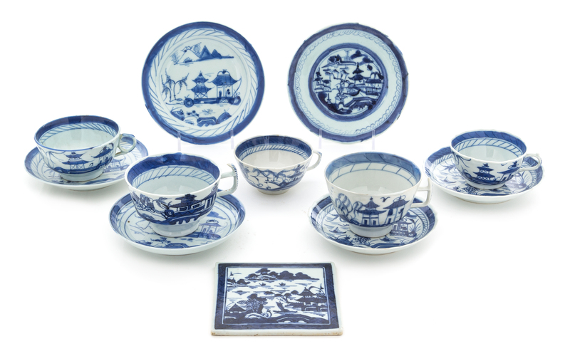 A Group of Twelve Canton Porcelain Blue and White Articles
