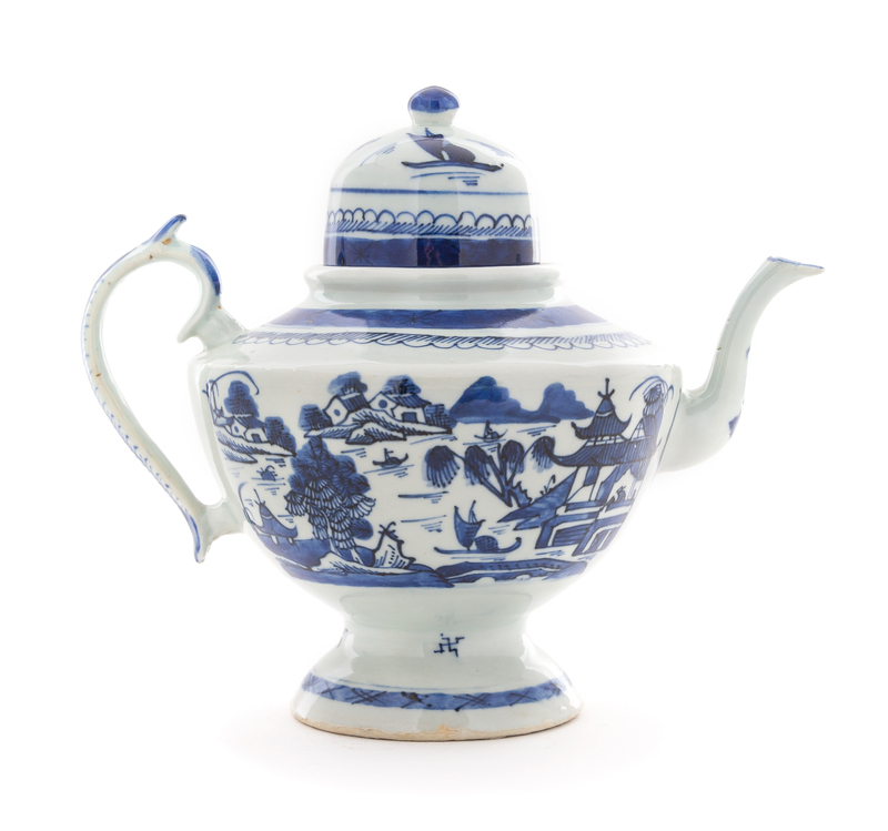 A Large Canton Porcelain Blue and White Teapot