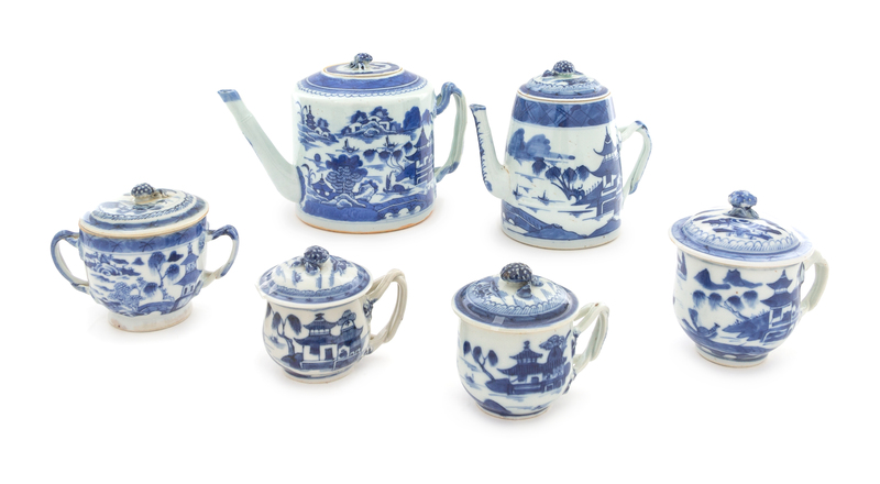 A Canton Porcelain Blue and White Tea and Chocolate Set