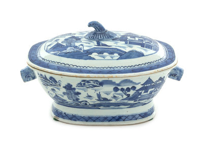 A Canton Blue and White Covered Tureen
