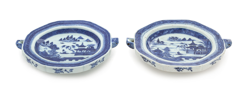 Two Canton Blue and White Warming Dishes