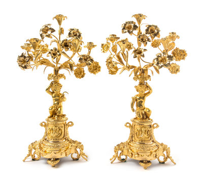 A Pair of French Gilt Metal Five-Light Candelabra