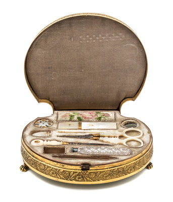 A Palais Royal Gilt Metal Mounted Tortoise Shell Sewing Kit