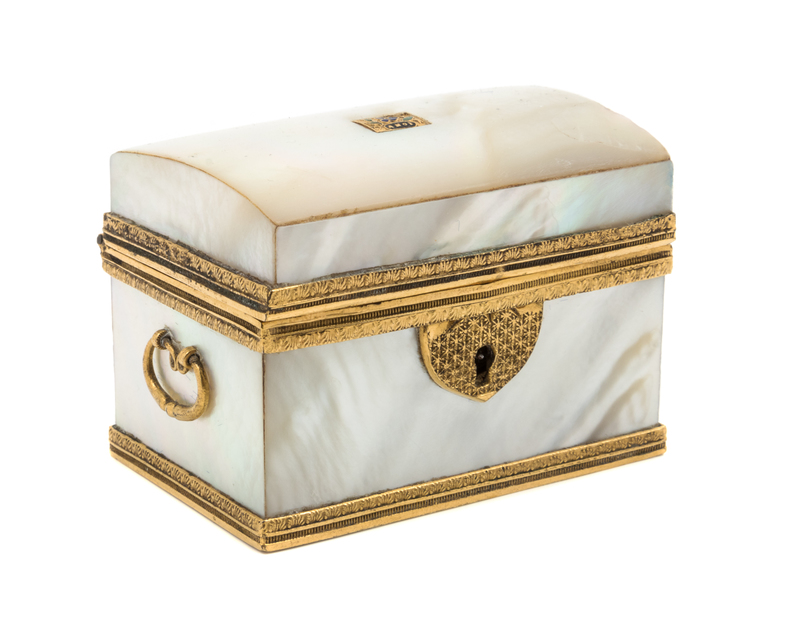 A Palais Royal Gilt Metal Mounted Mother-of-Pearl Sewing Casket