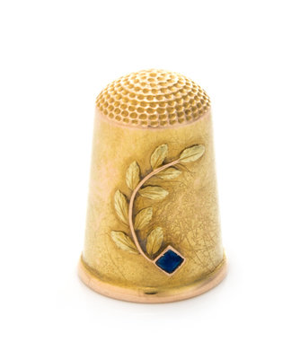 A Russian Yellow Gold and Sapphire Thimble