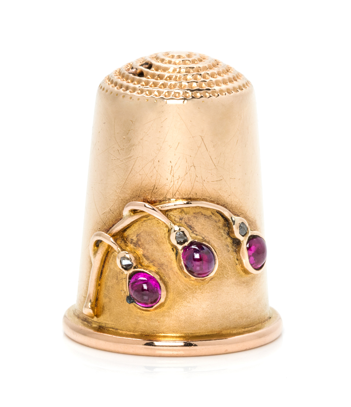 A Russian Gold, Diamond and Ruby Thimble