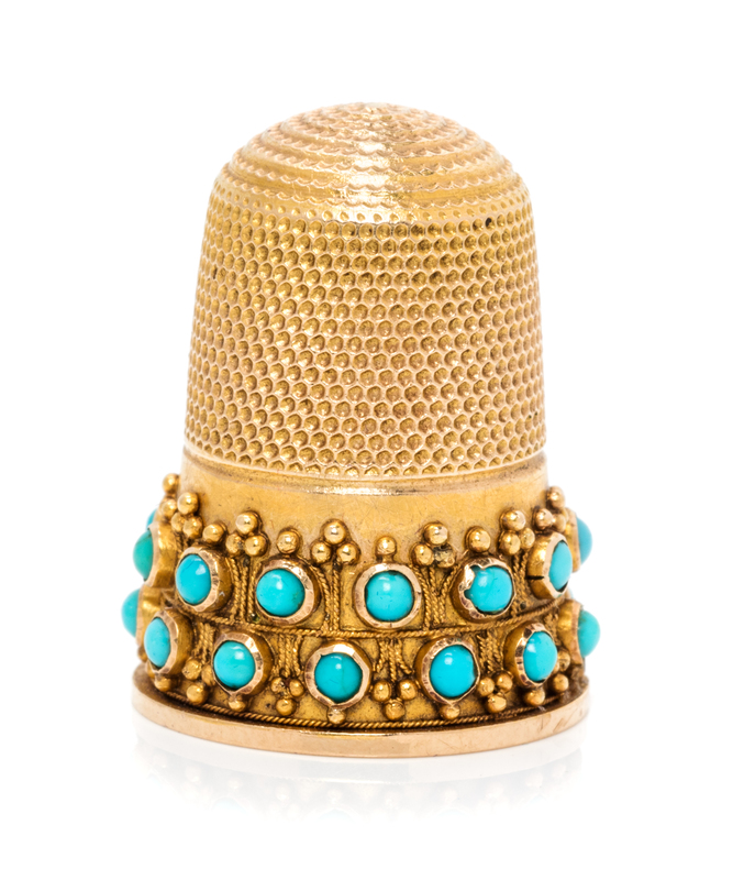 A Victorian Yellow Gold and Turquoise Thimble
