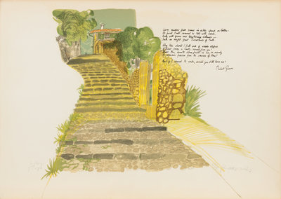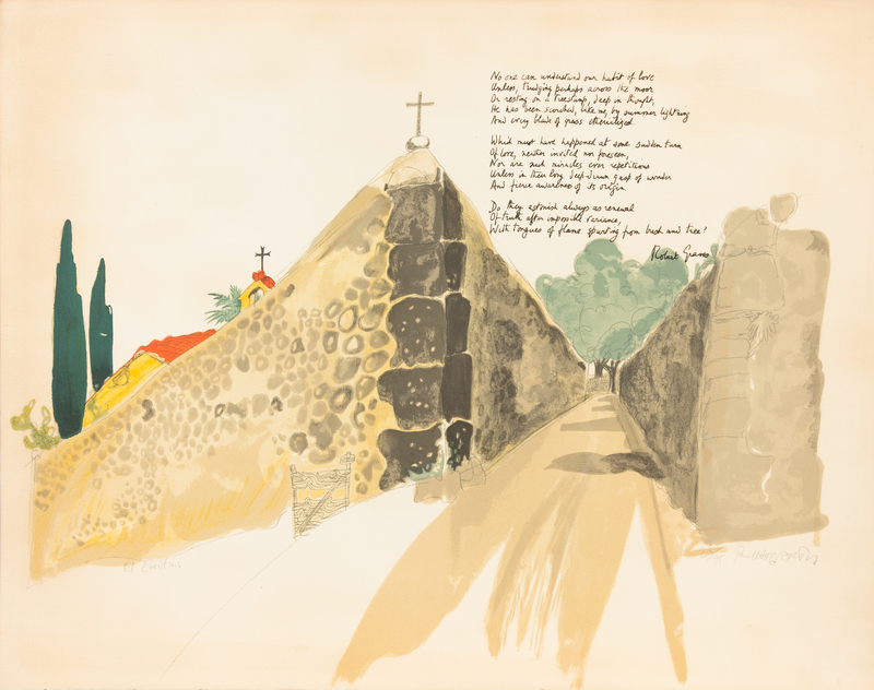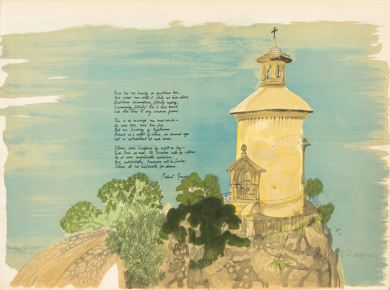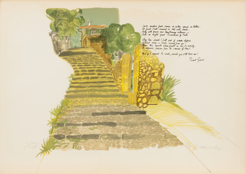 Folio (545 x 750 mm). Letterpress title, 5 lithographs hand-printed in 12-14 colors, EACH NUMBERED AND SIGNED BY HOGARTH. Loose in cloth portfolio. (Sheet edges slightly browned.) LIMITED EDITION, number 23 of 75 copies SIGNED ON EACH PLATE BY HOGARTH, and SIGNED BY GRAVES on the limitation page. The plates include: The Oratory of Santa Catalian, The Passage of the Taupe, Els Ermitans, La Foradada, and Olive Groves.
