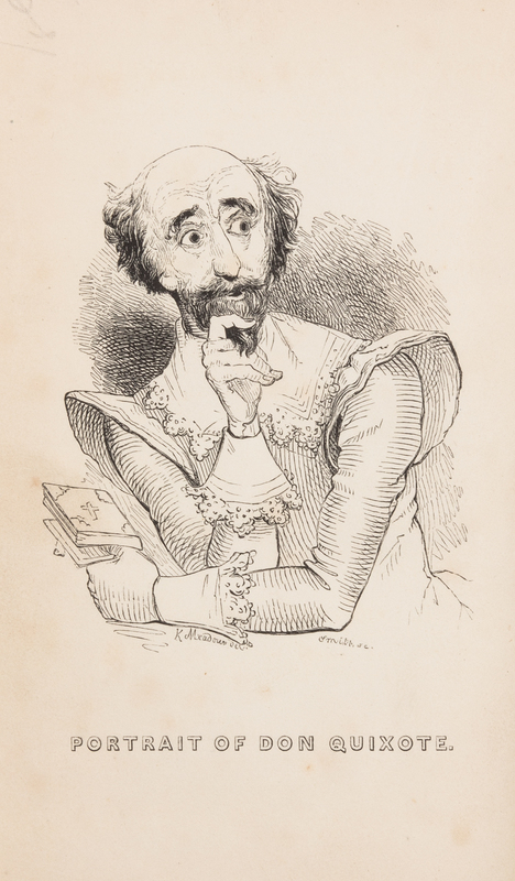 [CERVANTES, SAAVEDRA, Miguel de] CRUIKSHANK, George, illustrator. -- SMOLLETT, Tobias (1721-1771). The History and Adventures of the Renowned Don Quixote: From the Spanish of Miguel de Cervantes Saavedra. London: Effingham Wilson, 1833.
