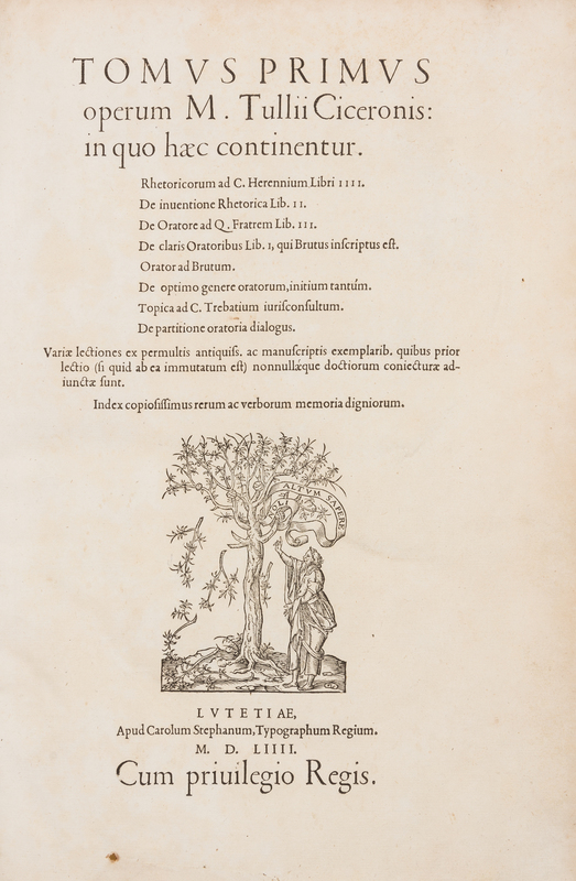 CICERO, Marcus Tullius (106-43 B.C.). Opera. Paris: Charles Estienne, 1554.