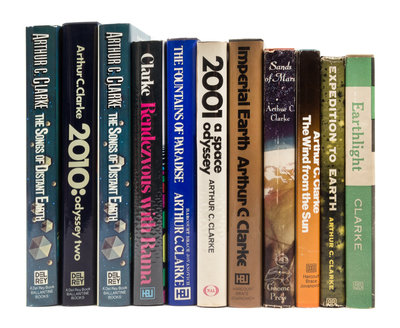 Sands of Mars. New York: Gnome Press, 1952. See Currey p.115. -- Expedition to Earth. New York: Ballantine Books, 1953. FIRST EDITION. Currey p.113. -- Earthlight. New York: Ballantine Books, 1955. FIRST EDITION. Currey p.113. -- 2001: A Space Odyssey. New York: New American Library, 1968. FIRST EDITION. Currey p.115. -- The Wind from the Sun: Stories of the Space Age. New York: Harcourt Brace Jovanovich, 1972. FIRST EDITION. Currey p.115. -- Rendezvous with Rama. New York: Harcourt Brace Jovanovich, 1973. FIRST AMERICAN EDITION. See Currey p.115. -- Imperial Earth. New York and London: Harcourt Brace Jovanovich, 1976. FIRST EDITION. Currey p.114. -- The Foundations of Paradise. New York and London: Harcourt Brace Jovanovich, 1979. FIRST EDITION. -- 2010: Odyssey Two. New York: Ballantine Books, 1982. FIRST EDITION. -- The Songs of Distant Earth. New York: Ballantine Books, 1986. -- A second copy. -- Together 11 volumes, 8vo, publisher's cloth, dust jackets, condition generally fine.