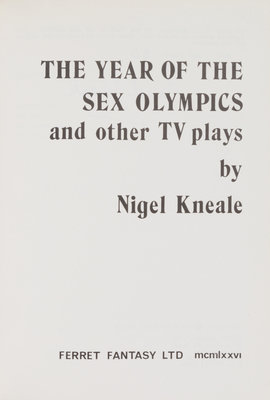 KNEALE, NIGEL (1922-2006). The Year of the Sex Olympics and other TV Plays. London: Ferret Fantasy, 1976.