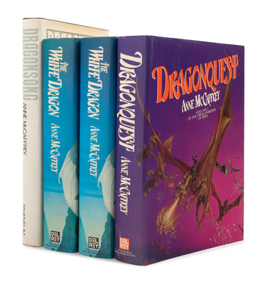 Dragonsong. New York: Atheneum, 1976. FIRST EDITION, SIGNED BY MCCAFFREY. -- Dragonquest. Volume 2 of "The Dragon Riders of Pern". New York: Ballantine Books, 1979. "First Hardcover Edition." -- The White Dragon. Volume III of "The Dragon Riders of Pern". New York: Ballantine Books, 1978. FIRST EDITION, SIGNED BY MCCAFFREY. -- A second copy, unsigned. -- Together 4 volumes, 8vo, publisher's cloth, dust jackets, condition generally fine.