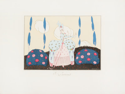 Three original fashion sketches in pencil and ink, ca 1915. Quarter morocco folding case. The three pencil and wash sketches depict: a pleated gown and matching jacket shown front and profile with 12-lines in the artist's hand in pencil; a winter coat and mit; and a skirt and long coat. Low held a fashion exhibition in 1915, and issued an album of designs (Die Mode 1914-1915). She was affiliated with the Wiener Werkstte group, and in addition to designing fashion, textiles and glass, she was a book illustrator.