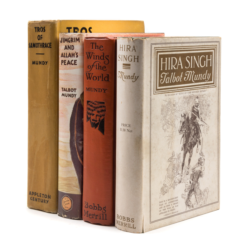The Winds of the World. Indianapolis: Bobbs-Merill Company, 1917. FIRST AMERICAN EDITION. -- Hira Singh. Indianapolis: Bobbs-Merill Company, 1918. ORIGINAL PRINTED DUST JACKET. FIRST EDITION. -- Jimgrim and Allah's Peace. New York and London: D. Appleton-Century Company, 1936. ORIGINAL PRINTED DUST JACKET. FIRST AMERICAN EDITION. Provenance: H.C. Worden (bookplate). -- Tros of Samothrace. London: D. Appleton-Century Company, 1938. FIRST EDITION. Provenance: Frances and Keith Fowler (bookplate). -- Together, 4 volumes, 8vo, original publisher's pictorial cloth, condition generally fine.
