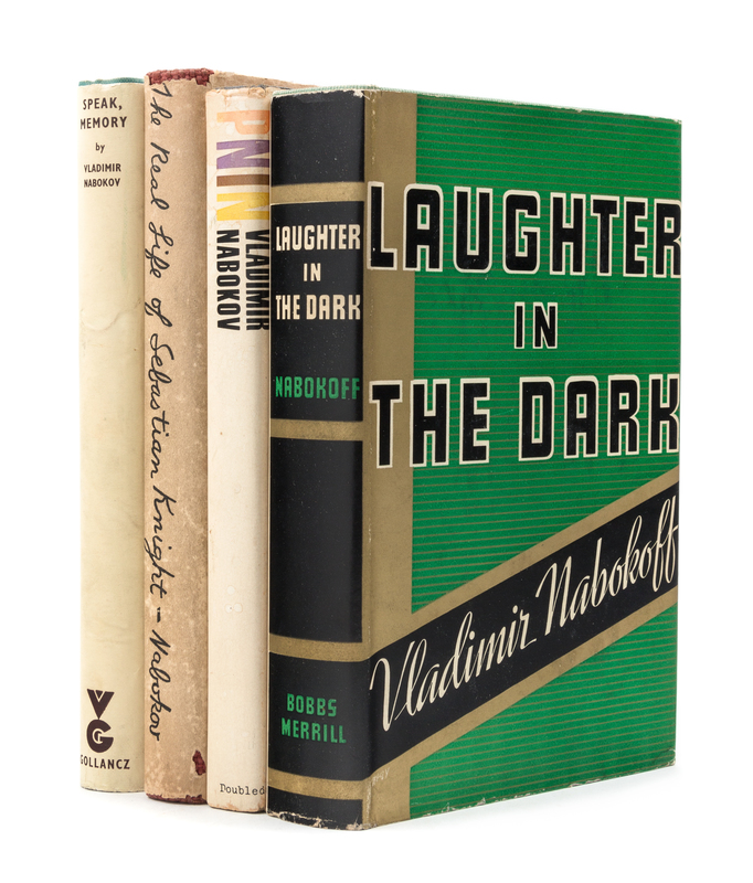 Laughter in the Dark. Indianapolis and New York: Bobbs-Merrill Company, 1938. 8vo. Publisher's green cloth; original printed dust jacket. FIRST AMERICAN EDITION. Juliar A14.2 (binding variant a). - The Real Life of Sebastian Knight. Norfolk, CT: New Directions, 1941. 8vo. Publisher's red woven burlap cloth; original printed dust-jacket. Juliar A21.1. - Speak, Memory. London: Victor Gollancz, 1951. 8vo. Publisher's blue-green black-stamped cloth; original printed dust jacket. FIRST BRITISH EDITION. Juliar A26.2 (Issue a). - Pnin. Garden City: Doubleday & Company, Inc., 1957. 8vo. Original black cloth, spine lettered in yellow and orange; original printed dust jacket. FIRST EDITION. Juliar A30.1. - Together 4 volumes, condition generally good.