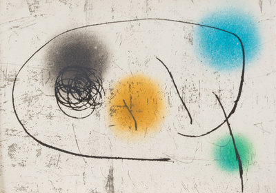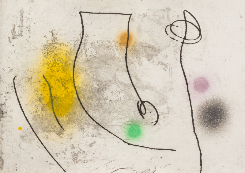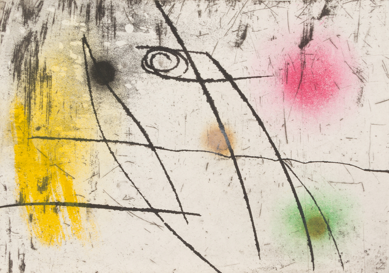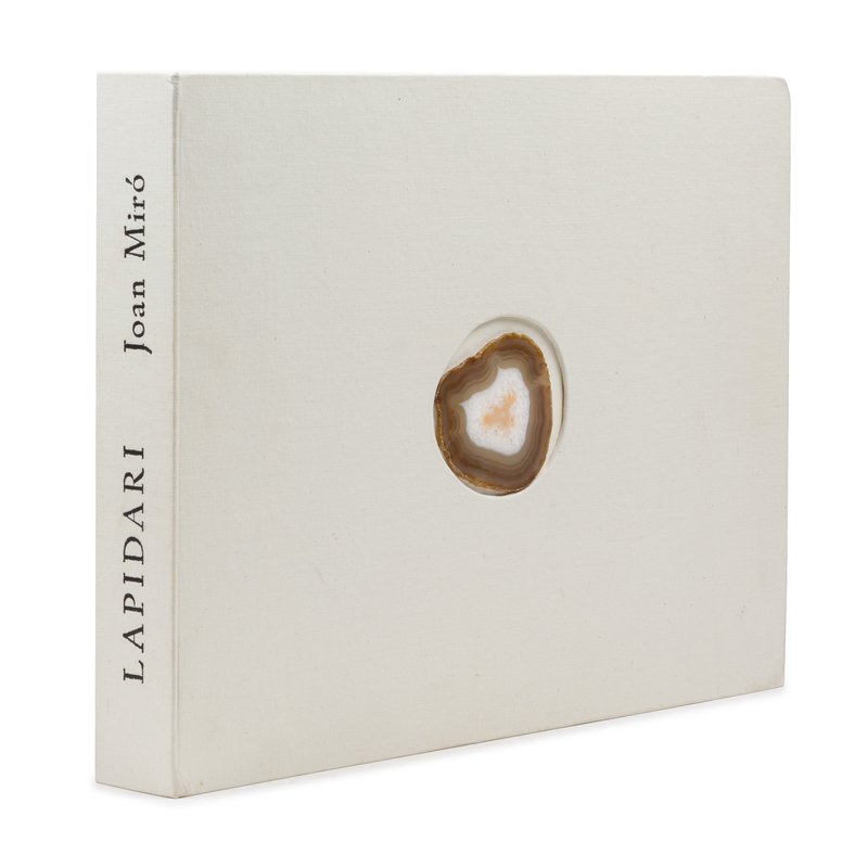 Oblong folio (358 x 498 mm). 24 original etchings by Mir including 12 in color. (A few margins with very minor soiling or offsetting). Loose as issued in original cloth folding case, upper cover set with a slice from a geode (some minor soiling to edges). LIMITED EDITION, number 33 of 130 copies on velin d'Arches SIGNED BY MIRO of a total edition of 145 copies. Mir's illustrations accompany text written by anonymous Catalan authors of the 15th century about the properties of different stones. A FINE COPY, RARE AT AUCTION.