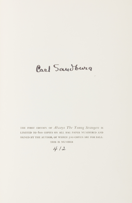 SANDBURG, Carl (1878-1967). Always the Young Strangers. New York: Harcourt, Brace and Company, 1953.