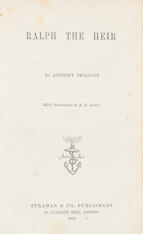 DICKENS, Charles. The Posthumous Papers of the Pickwick Club. London: Chapman and Hall, 1837. 8vo. Engraved frontispiece, engraved title, 43 engraved plates after Phiz. (Some overall spotting). Contemporary half brown calf (rebacked preserving original spine, some light wear). FIRST EDITION in book form, wtih early issue points: page 43, second paragraph below Chapter V, line 1 reads "ruined wall" in the singular; with the rare signature misprint on p. 261, reading X2; with signature "E" present on p. 25. -- THACKERAY, William Makepeace. Vanity Fair. London: Bradbury and Evans, 1849. 8vo. Engraved frontispiece, engraved title, numerous engraved plates and illustrations. (Some spotting.) Later half red morocco gilt, top edge gilt (some light wear to extremities). -- TROLLOPE, Anthony. Ralph the Heir. London: Strahan & Co., 1871. 8vo. Numerous engraved plates. (Lightly spotted.) Contemporary red half calf, marbled boards (some light wear). -- And 2 others. Together, 5 works in 7 volumes, condition generally good.