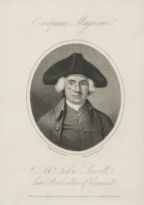 View of the British Museum. Hand-colored engraved view. -- "At Hookham's Circulating Library. Old Bond Street." Old library label. n.d. -- Mr. William Coke and Mr. John Guthrie. Engraved plate. -- "Mr. John Sewell. Bookseller of Cornhill." Engraved portrait. Ca 1806. -- "Illustrations for Scrap Books." Hand-colored figure cut out. -- Photographic portrait of W. Legrand, bookseller on Lower Collins Street, Hobart, Tasmania, ca 1900. -- Numerous illustrated printed leaves from books. -- Together, 13 pieces, matted and framed (not examined out of frame).