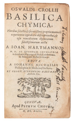 CROLLIUS, Oswaldus (1580-1609). Basilica Chymica. Geneva: P. Chouet, 1643.