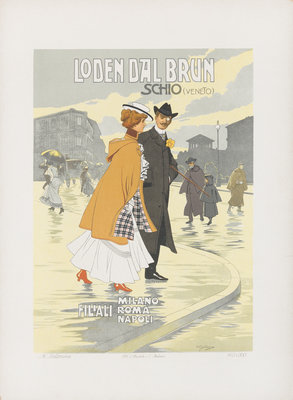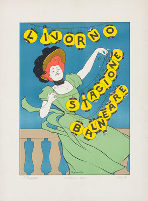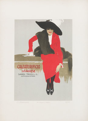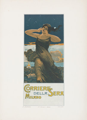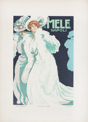 (360 x 263 mm). 50 lithographic plates. (Some light toning or stains primarily to margin or verso, a few plates with short marginal creases or tears.) Loose in cloth and decorated paper-covered boards portfolio (worn, a few stains). AN EXTENSIVE RUN of the Ricordi printing house's portfolio, published prior to the first World War and featuring miniature reproductions of the firm's poster art created between 1895 and 1914. The Ricordi firm lithographed posters for Campari, the Mele Department store, and others; under the direction of Adolfo Hohenstein, the firm nurtured the talent of Art Nouveau artists Marcello Dudovich, Franz Laskoff, Leopoldo Metlicovitz, Aleardo Villa, and others.