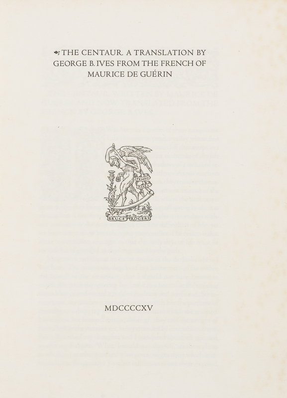 [ROGERS, Bruce]. -- GURIN, Maurice de (1810-1839). The Centaur. Montague, MA: Montague Press, 1915.