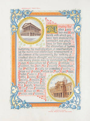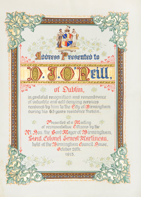 [ILLUMINATION.] NEWEY, H.W. Cover title: Address Presented to D.J. O'Neill, Birmingham, 1913. [Birmingham: Morton & Newey, 1913-1914.]