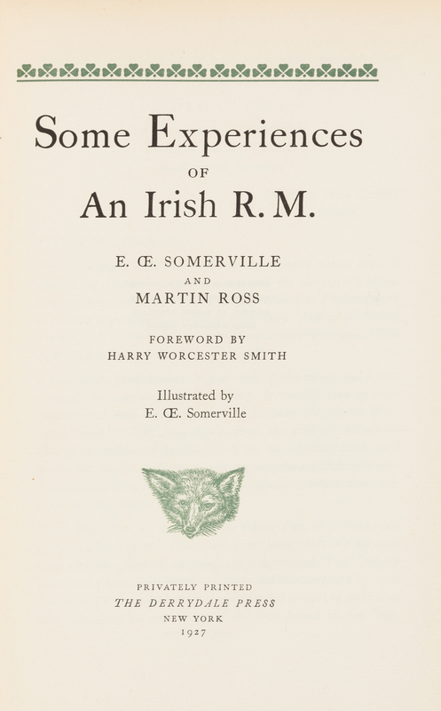 SOMERVILLE, Edith (1858-1949) and Martin [Violet Florence] ROSS (1862-1915). Sporting Works New York: Privately Printed by The Derrydale Press, 1927.