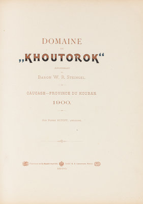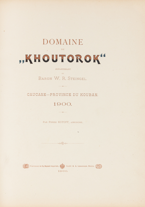 KOTOFF, Pierre. Domaine de "Khoutorok" Appartenant au Baron W.R. Steingel. Caucase - Province du Kouban. Moscow: A.A. Lewenson, 1900.