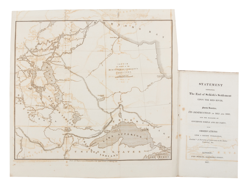 Le General James A. Garfield. Vigtieme President des Etats-Unis. Esquisse Biographique. ["General James Garfield. Twentieth President of the United States. Biographical Sketch"]. Paris: E. Dentu, 1881. Original wrappers. -- TRASENSTER, Paul. Aux Etats-Unis. Notes de Voyage d'un Ingenieur. Liege: Ch. Aug. Desor, 1885. Original wrappers. -- Statement Respecting the Earl of Selkirk's Settlement upon the Red River, in North America... with Observations upon a Recent Publication, entitled "A Narrative of Occurrences in the Indian Countries," &c. London: John Murray, 1817. 8vo. ORIGINAL BOARDS (rebacked). -- With 6 others. Together 9 volumes, 8vo, 12mo and 4to, condition generally good.