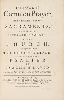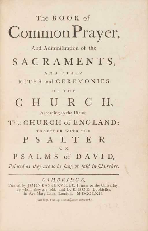 [BINDING]. BOOK OF COMMON PRAYER, English. The Book of Common Prayer, and Administration of the Sacraments, and other Rites and Ceremonies of the Church, According to the Use of the Church of England. Cambridge: Baskerville, 1762.