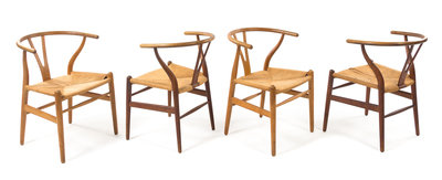 a group of four Wishbone chairs